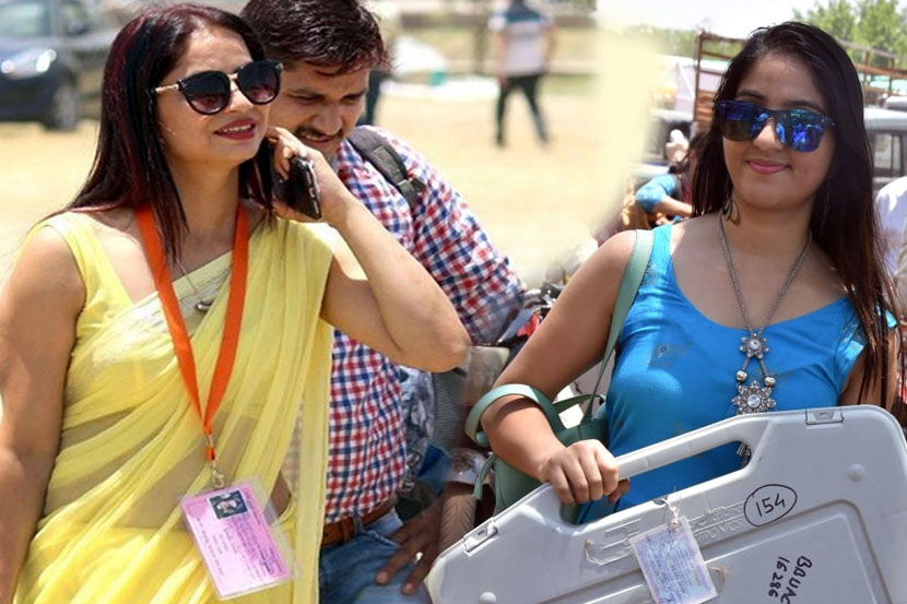 निवडणुकीत मतदान कर्मचारी म्हणून काम करणाऱ्या अशाच दोन महिलांच्या फोटोंनी सध्या धुमाकूळ घातला आहे. सर्वात आधी पिवळ्या, लिंबू रंगाची साडी घातलेली महिला कर्मचारी झोतात आली नाही तोच आणखी एक निळ्या रंगांचा झगा घालून कर्तव्यावर निघालेली महिला कर्मचारी चर्चेचा विषय झाली आहे. प्रत्येक मोबाईलवर या दोन्हीही महिला कर्मचाऱ्यांनी स्थान मिळवले आहे. आणि अशा व्हायरल झालेल्या व्हिडीओचा आणि फोटोंचा शोध लावणार नाहीत ते पत्रकार कसले? त्यांनीही यामहिलांचा शोध घेऊन त्या कोण कुठल्या याचा शोध लावला आहे.