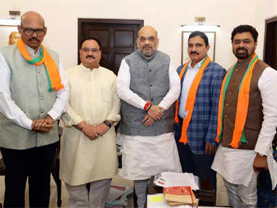 भाजपचे कार्यकारी अध्यक्ष जे. पी. नड्डा यांच्या उपस्थितीत टी. जी. व्यंकटेश, सी. एम. रमेश आणि वाय. एस. चौधरी यांनी आज भाजपात प्रवेश केला तर जी. एम. राव हे नंतर प्रवेश करणार आहेत. आज प्रकृती अस्वास्थ्यामुळे ते प्रवेश सोहळ्याला उपस्थित राहू शकले नाहीत, असे नड्डा यांनी स्पष्ट केले.