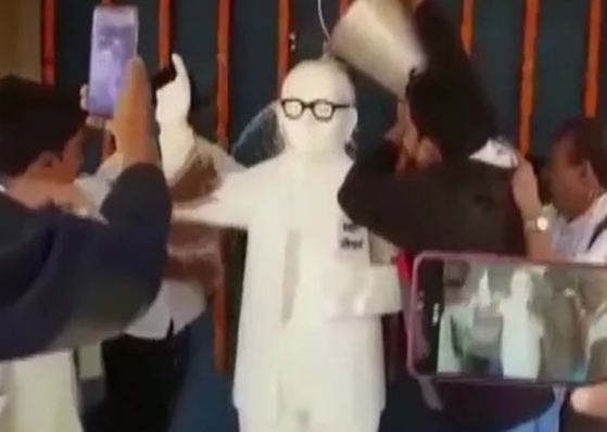 वृत्त से आहे कि , गिरीराज सिंह यांच्या सभेनंतर २४ तासांनी भाकपचे स्थानिक नेते सनोज सरोज आणि राजदचे विकास पासवान आणि रूपनारायण पासवान तेथे गंगाजल घेऊन आले आणि त्यांनी पुतळ्यावर गंगाजल शिंपडले. गंगाजलाने पुतळा पूर्णपणे धुताना या कार्यकर्त्यांनी जय भीम आणि म. ज्योतिबा फुले यांच्या जयजयकाराच्या घोषणा दिल्या. सरोज आणि पासवान हे सीएएविरुद्ध आंदोलन करीत आहेत.