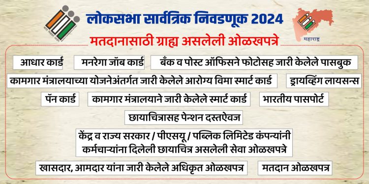 छायाचित्र असलेले मतदार ओळखपत्र आहे असे मतदार मतदान केंद्रावर त्यांची ओळख पटविण्यासाठी मतदार ओळखपत्र सादर करतील. छायाचित्रासह मतदार ओळखपत्र सादर करू शकणार नाहीत अशा मतदारांची ओळख पटविण्यासाठी निवडणूक आयोगाने निश्चित केलेल्या १२ पैकी कोणताही एक पुरावा ग्राह्य धरण्यात येणार आहे. पारपत्र (पासपोर्ट), वाहन चालक परवाना (ड्रायव्हिंग लायसन्स), केंद्र अथवा राज्य शासन, तसेच सार्वजनिक क्षेत्रातील उपक्रम, पब्लिक लिमिटेड कंपन्यांनी आपल्या कर्मचाऱ्यांना वितरित केलेले छायाचित्र ओळखपत्र, बँक किंवा टपाल विभागातर्फे छायाचित्रासह वितरित करण्यात आलेले पासबुक, पॅन कार्ड, राष्ट्रीय लोकसंख्या नोंदवही अंतर्गत भारतीय महानिबंधक आणि जनगणना आयुक्तांनी जारी केलेले स्मार्ट कार्ड, मनरेगा अंतर्गत निर्गमित करण्यात आलेले रोजगार ओळखपत्र, निवृत्तीवेतनाची दस्तावेज, संसद, विधानसभा, विधानपरिषदेच्या सदस्यांना वितरित केलेले अधिकृत ओळखपत्र, आधार कार्ड, भारत सरकारच्या सामाजिक न्याय व सशक्तिकरण मंत्रालयाच्यावतीने दिव्यांग व्यक्तींना वितरित केलेले विशेष ओळखपत्र, कामगार मंत्रालयाद्वारा वितरित आरोग्य विमा स्मार्ट कार्ड हे १२ पुरावे मतदानासाठी ग्राह्य धरले जाणार आहेत.