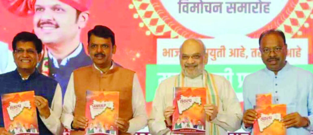 भाजपचे संकल्पपत्र जाहीर , लाडक्या बहिणींसह तरुणांना २५ लाख नोकऱ्यांचे आश्वासन